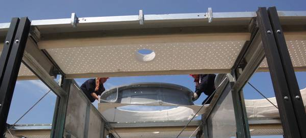 采用玻璃鋼材質(zhì)風(fēng)筒,阻燃氧指數(shù)≥40,風(fēng)筒的使用壽命30年。風(fēng)筒表面平整光滑,整體剛性強(qiáng),表面具有耐老化、耐腐蝕、不退色、不龜裂、抗紫外線等優(yōu)良性能;風(fēng)筒內(nèi)壁與風(fēng)機(jī)葉尖之間距離控制在30±5mm。